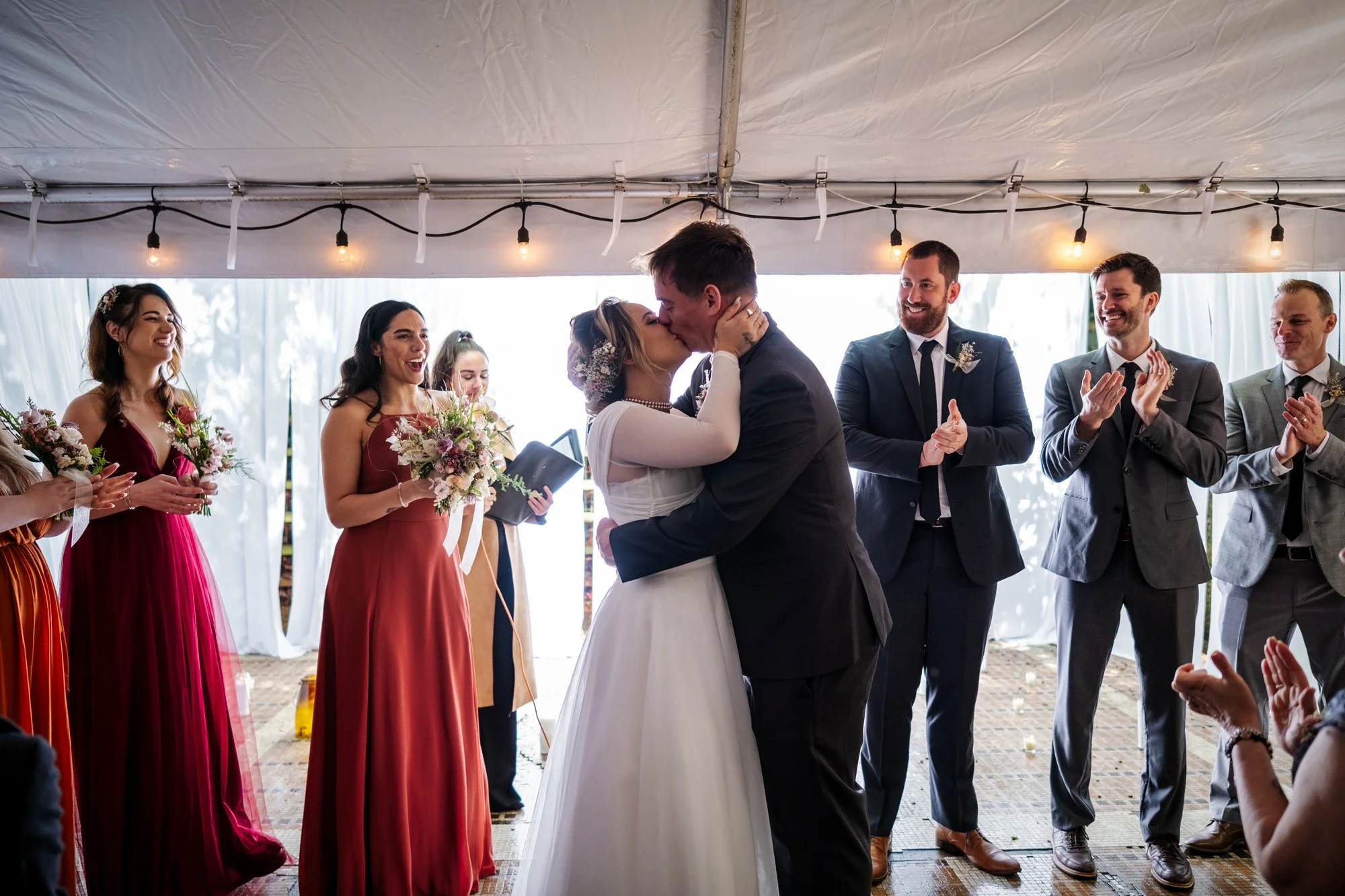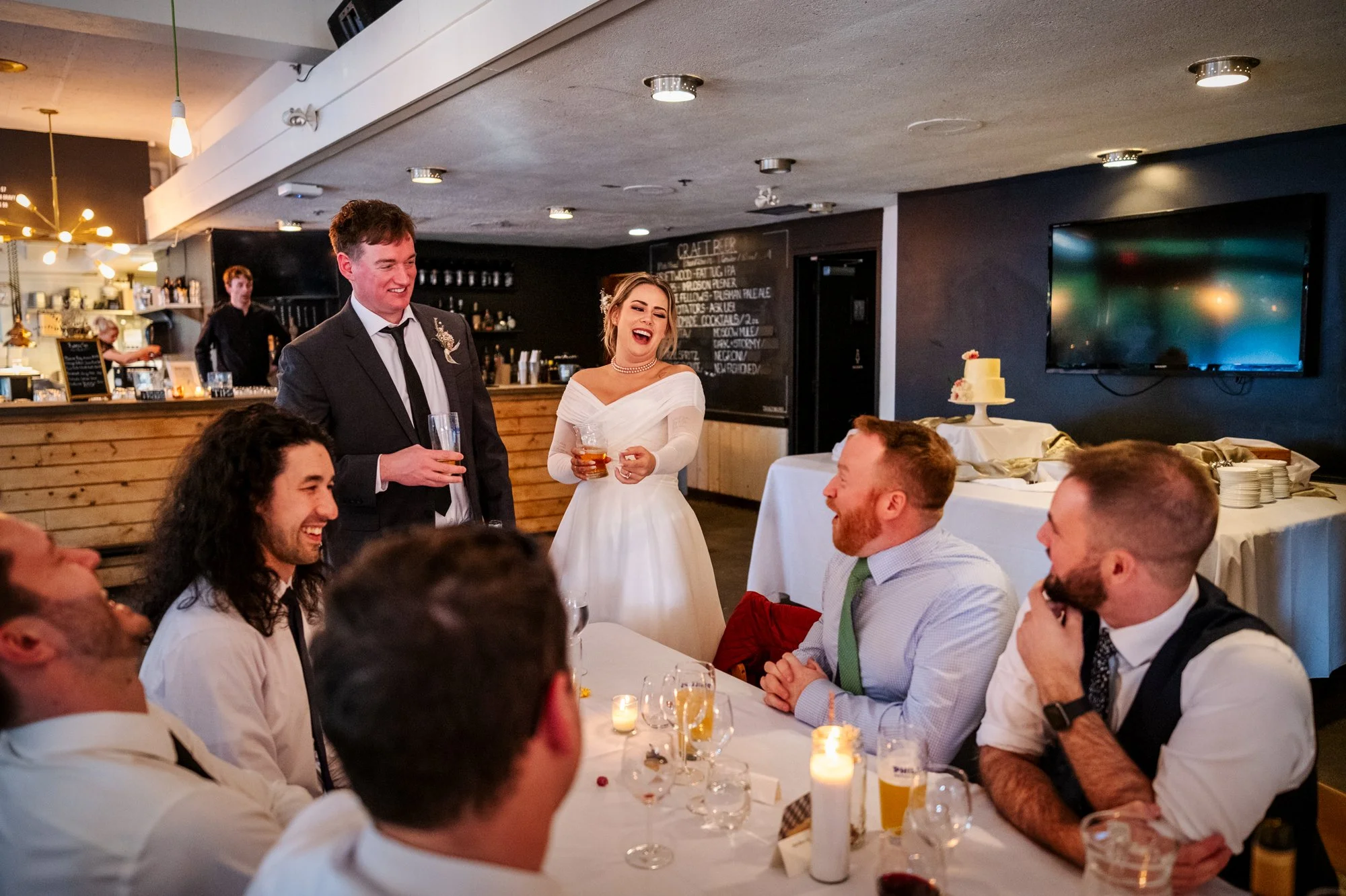 After the ceremony, Brad and Jenika celebrated with a joyous toast among friends and family. The newlyweds, glowing with happiness, clinked glasses in a moment of pure celebration. The laughter and love shared during this time were a testament to the deep bonds they have with their loved ones, and our wedding photography beautifully captured these cherished interactions.