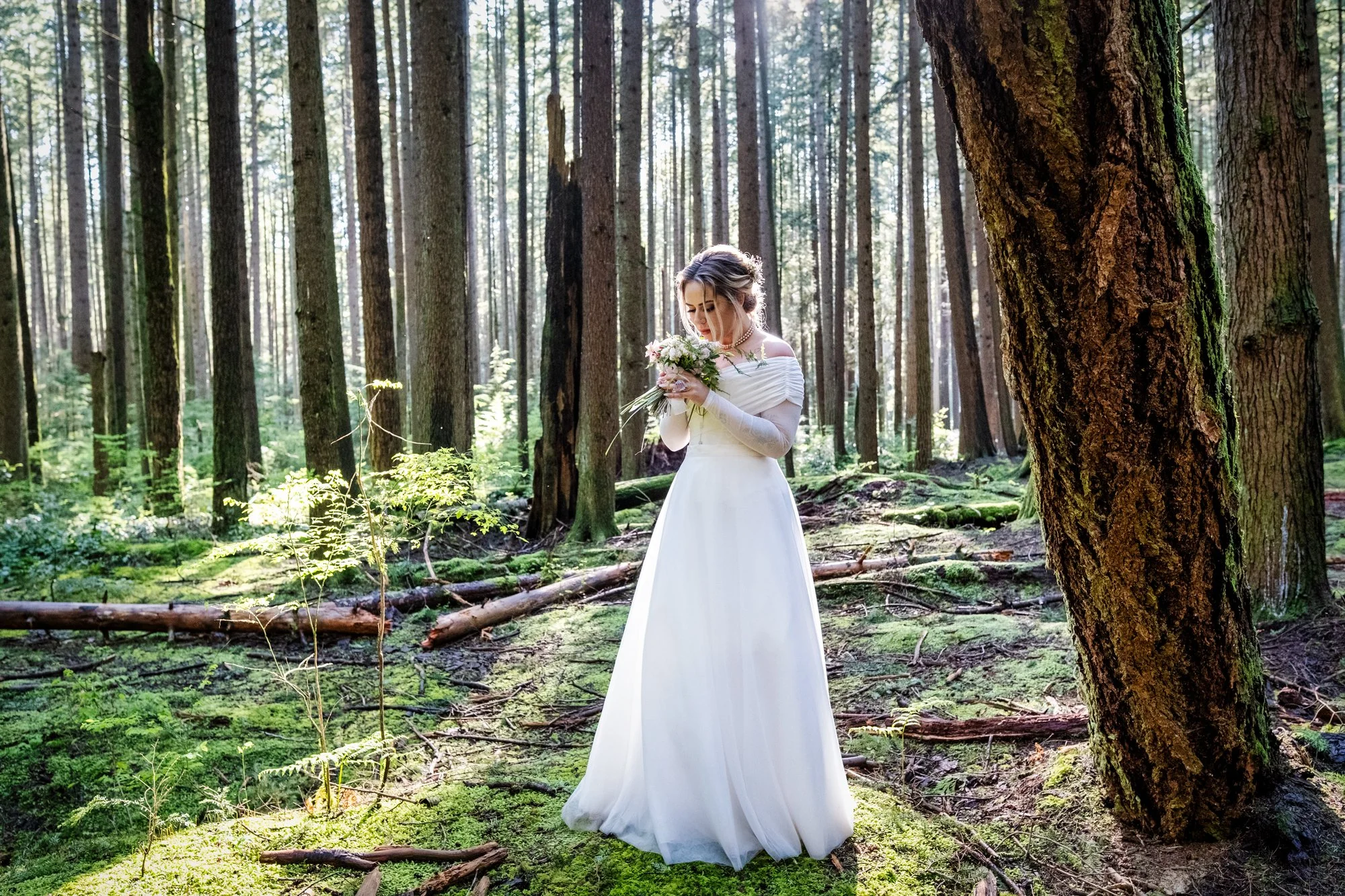 Following the ceremony, we headed to the Pacific Spirit Trail in Vancouver West for their wedding portrait session. Brad and Jenika wanted a natural, outdoor setting to complement their love story. Against the serene backdrop of the lush forest, I captured intimate portraits of the couple as well as joyful group shots with their wedding party. Their energy and excitement made the session truly enjoyable, and the stunning surroundings provided the perfect canvas for their love story.